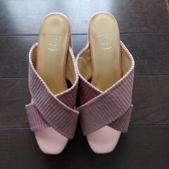 コーデュロイ 厚底 くすみピンク ベビーピンク サンダル