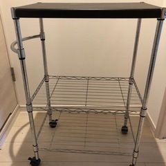 キッチンにて、お菓子や炊飯器を置いたりしていましたが、さらに大きいラックを購入したので不要に。