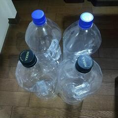 ウィスキー×2と焼酎×2が入っていた4L空ボトルです。我が家では、シャワーでお湯が出るまでに無駄に出てしまう水をこれに貯蔵してプランターの水やりや災害時のトイレに流す水の備蓄容器に使っています。バラでも結構です。お引取りしてくださる方募集しております。