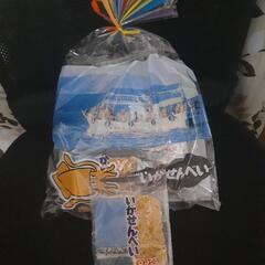商品はゴマせんべいにさきいかが散りばめられたもの。