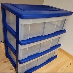 2024年3月にこちらのサイトで譲り受けたものです。 1ヶ月ほど使用しましたが、使わなくなったのでお譲りします。元々きれいでしたが新たに傷、汚れなどは付いていません。 "外寸:W60×D40×H63 内寸(引出し1段あたり):W52.5×D37×16 ※いずれも最大値。素人採寸のため誤差はご容赦ください。 キャスター・滑り止め(未使用)がそれぞれ4つ付属します。 出品にあたりできる限り綺麗に拭き取り清掃しましたが、 年数を経ているのと凹凸がそれなりにある形状のため、 取り切れない汚れが残っている場合がございます。予めご容赦ください。 あくまで中古品ですので、細かい点が気になる方は御遠慮ください。" 以前譲り受けた方の商品説明文一部抜粋いたしました。 東急東横線反町駅周辺の自宅での直接受け渡し希望となります。 よろしくお願いいたします。