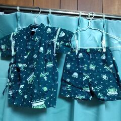 緑色、トイ・ストーリー柄、90サイズの甚平です。