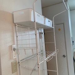 ハンガーラックのみの販売にしようかと思ったのですが、最後の写真にうっている、白いプラスチックの箱だったり洗濯かごだったりも全部セットで販売させていただきます!