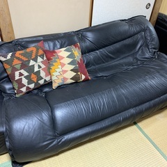 3人がけのソファー、黒のレザー(本革)です。