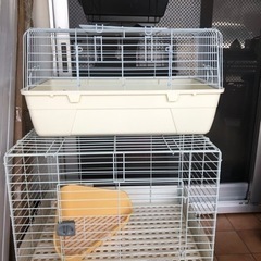 ケージ2つ、キャリー1つ、未使用トイレ1つの4点セット
