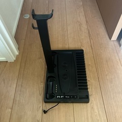 PS5 縦置きスタンド 3段階冷却 コントローラー充電スタンド LEDライトとUSBポート付属 コントローラー&メディアリモコン&ハブ&ヘッドセット収納 ブラック