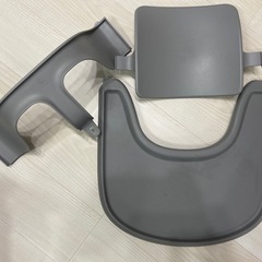 ストッケ トリップトラップのベビーセットの背もたれとレール(ガード)とトレイです。色はグレー。