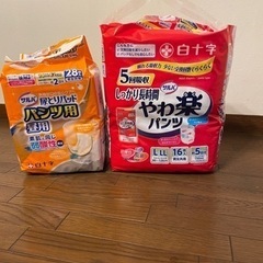 不要になったため、取りにきてくれる方を優先にお譲りします。 しっかり長時間 やわ楽パンツ(白十字) 1つ サイズ:L〜LL ウエストサイズ:80〜125 男女共用16枚入り 尿取りパット 5つ 昼用