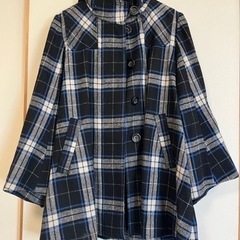 着たらポンチョ風になるブルーチェック柄のコートです。