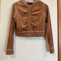 ブラウンパーカー ピンクのレース飾り付きで可愛い