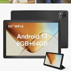 10.1インチandroid 14タブレット、クアッドコアプロセッサ、3 gb ram +64 gb rom、1280×800 hdタッチスクリーン、革ケース、5 gwifi6、2.4 ghz +5 ghzデュアルバンド接続、6000mahバッテリー容量、2 mp +8 mpリアカメラ