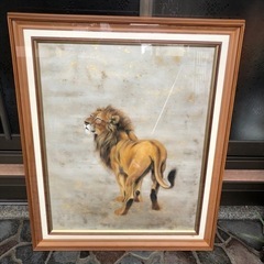 雄ライオン 猛獣 動物画 巨大画 額絵