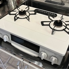 リンナイ グリル付きガステーブル(56センチ) 都市ガス用 ガスホース付です。 一人暮らしで使用して1年半です。細かい汚れはあるものの、使用感はあまりなく、中古品が嫌でない方でしたら気持ち良いお使いいただけると思います。 ガスホースは別売りでしたが、使用に際し付けましたのですぐにお使いいただけます。 外箱もございます。