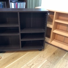 収納家具 キャスター付き ダークブラウンとナチュラル