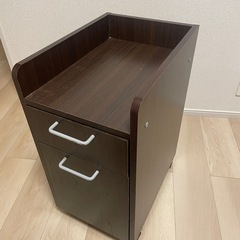 カウンター下収納です。しっかりした作りなので少し重いです。カウンターの下にちょうど置けるサイズですが、トイレや寝室に置いても良いと思います。