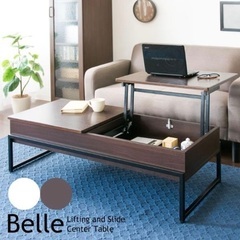 天板が左右に分かれて昇降&スライドする便利な機能付きセンターテーブル『Belle(ベル)』。