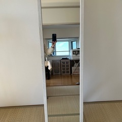 ニトリで3年ほど前に購入した白の木目調の全身鏡です。幅広なつくりで、目立った傷や汚れもなく美品です。