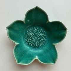 益子焼きのターコイズカラーのプレートです。右上が小さく欠けてます。