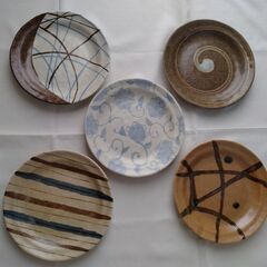 5種類の様々な柄が描かれた陶磁器製のお皿です。(直径 24cm)