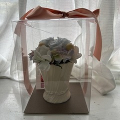 [値下げ]ブリザードフラワー水色&ホワイト花瓶付(日比谷花壇)