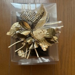 縦横 約12cm位で暗めのゴールド色のコサージュ。