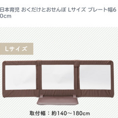 取り付け幅140〜180cm、高さ60cm、プレート幅60cm、おくだけとおせんぼLサイズのブラウンです。