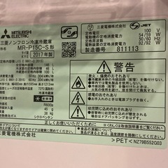 冷蔵庫 三菱 2017年製 146L MR-P15C-S