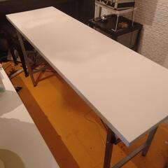 会社にあるような会議テーブルです。色は白でおしゃれです。折りたたみ式、天板下に小物収納できます。