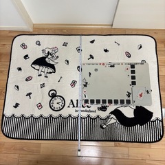 不思議の国のアリス柄のマグネットボードとフロアーマットラグのセットです。マグネットボードはボードマーカーとイレーサー付きです。ボードの写真3枚目、丸で囲んでいる所にキズ、使用中による細かなキズ、裏面ダンボールの引っ掛け部分の穴広がりなどあります。フロアーマットも畳ジワ汚れなど使用感ありますがまだまだ使えると思います写真を見て気にならない方いかがでしょうか。マットは洗濯して保管してました。取りに来ていただける方よろしくお願いします。