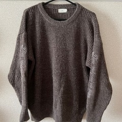栗色 ニットセーター 袖に刺繍あり ルーズフィット