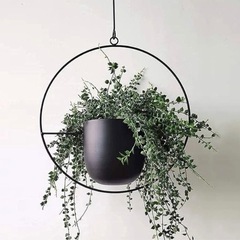 数年前Amazonで購入したきり活躍する事がなかったので、引っ越しを機に手放します。黒い金属製のシンプルなハンギングプランター(またはハンギングポット、ハンギングバスケット、植木鉢)です。上にフックがついており、吊り下げられるようになっています。実物(写真3枚目)は意外と大きいのでご注意ください。