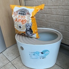 おからネオ砂、開封、少し使用したものですが、おつけします。片付けていたら、猫の足形が抜いてある未使用のスコップもおつけします。(写真4参照)