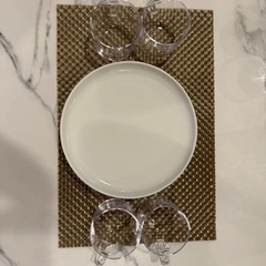 シンプルな白の大皿と透明な取手付きカップ ×6