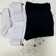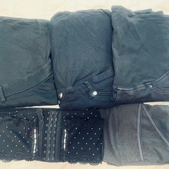 マタニティパンツ(Mサイズ)が3着と専用のベルトが2つです。
