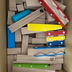ビー玉などを転がせるピタゴラスのような積み木です!