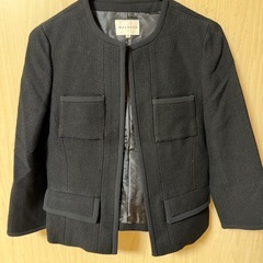 3回程使用しましたシンプルで洗練されたデザインの黒いテーラードジャケット、前面に2つのポケット付き。
