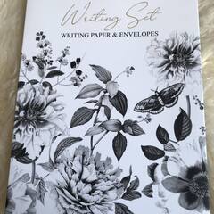 便箋と封筒が20枚ずつ入っています。中身は未開封ですが、外箱が少し折れています。