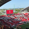 焦げ茶色の生地のソファセットです。ソファ同士が離れないように連結用のマジックテープが底部にあります。