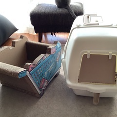 猫用トイレ フルカバータイプ 爪研ぎラック 2点おまとめ