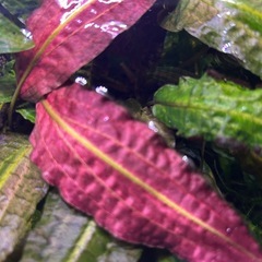 葉の凸凹と真っ赤に染まる大変綺麗なクリプトコリネで完全水中葉です。