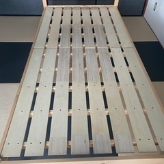 組み立て式、木製ベッドフレームです。※撮影のため仮組みしています。