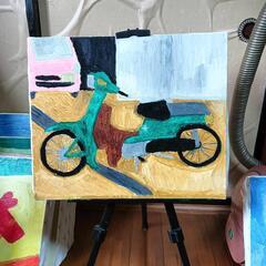 50ccバイクのモチーフの、絵画です。