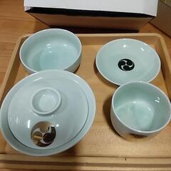 塗り物のセットが多いですが、これは白木&青磁の磁器なので明るい爽やかな印象です。