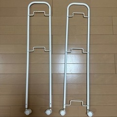 カゴを3段上からはめる仕様ですが、カゴが劣化したため両脇の支柱のみです。一つは下のラックをはめる部分がなくなっています。