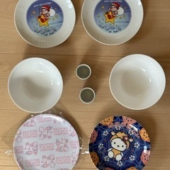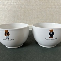 • A pair of white bowl (The World of Classy Bear), a pair of soup bowl (Leaf logo), 5 pieces of blue saucers, and 1 blue mug.