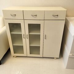 食器棚 キッチンカウンター 幅90 ホワイト ガラスキャビネット レンジ台 レンジラック キッチンラック