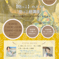 (レクチャーがありますので、現在お使いの抱っこ紐をお持ちください)