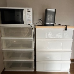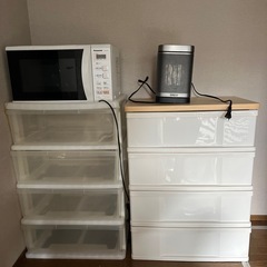 電子レンジと電気ヒーターと服を入れるタンスです!