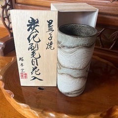 【半額値下げ済み!】益子焼 炭化刷毛目花入 塚本窯 花瓶