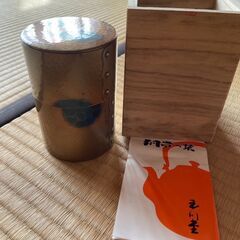【値下済み】玉川堂 鎚起銅器亀甲文鋲打茶筒 木箱あり(蓋なし)